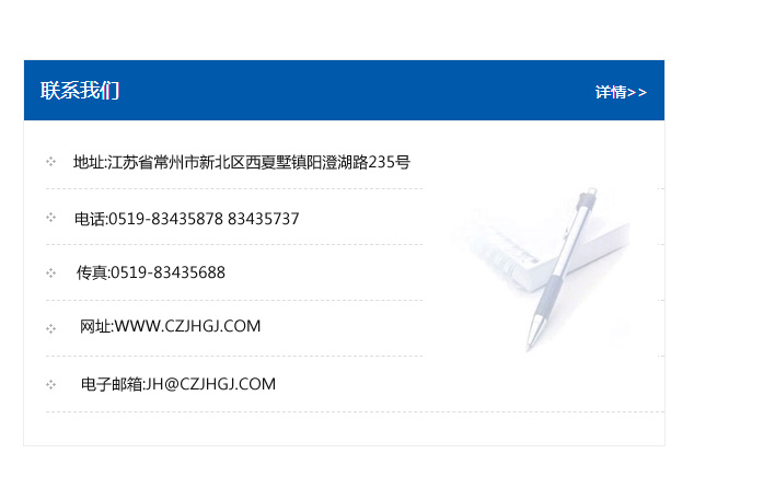 傳真:0519-83435688    郵編:213135    網址:WWW.czjhgj_com.8ach.com    電子郵箱:JH@czjhgj_com.8ach.com